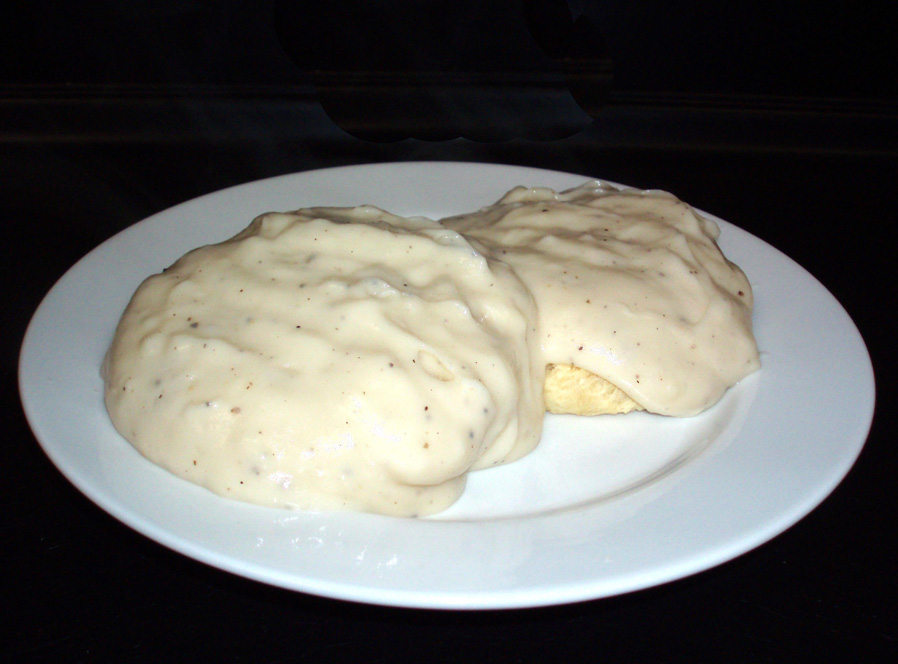 A Southern favorite! A buttery Merritt's biscuit smothered with country sausage gravy.
