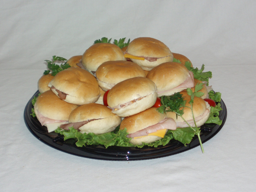 Ham, Roast beef, & Turkey finger sandwiches with your choice of cheese. Mayo and Mustard on the side. (18 sandwiches)