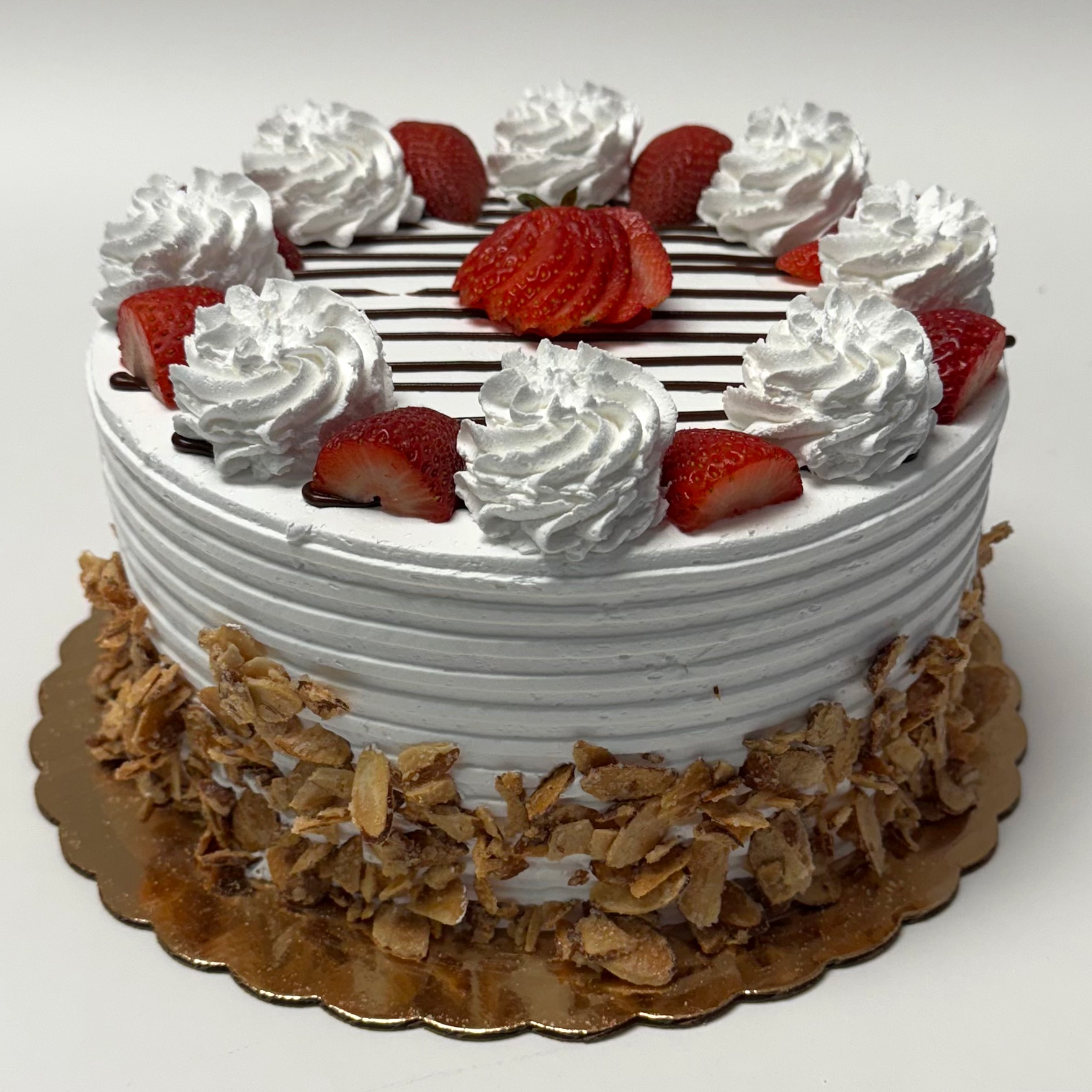 Missing your strawberry shortcake? Our fresh strawberry torte is a slice of summer with layers of whipped cream, sliced strawberries and moist vanilla cake. Perfect for a warm summer night!