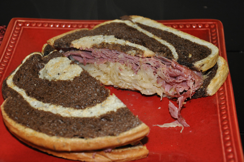 Never change a Reuben. The combination of sliced corn beef, swiss and sauerkraut with thousand island dressing on grilled marble rye bread is perfect!