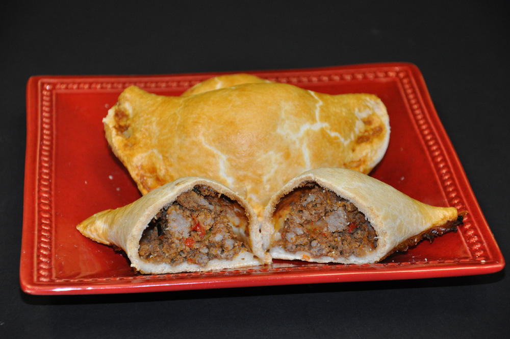 Great option for breakfast or even a quick lunch! Seasoned ground beef with onions, peppers and black olives in a pie dough.