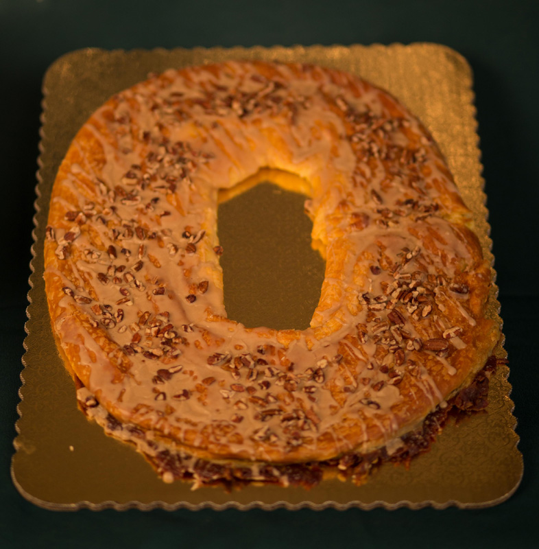 Swedish coffee cake made of danish dough with a cinnamon pecan filling