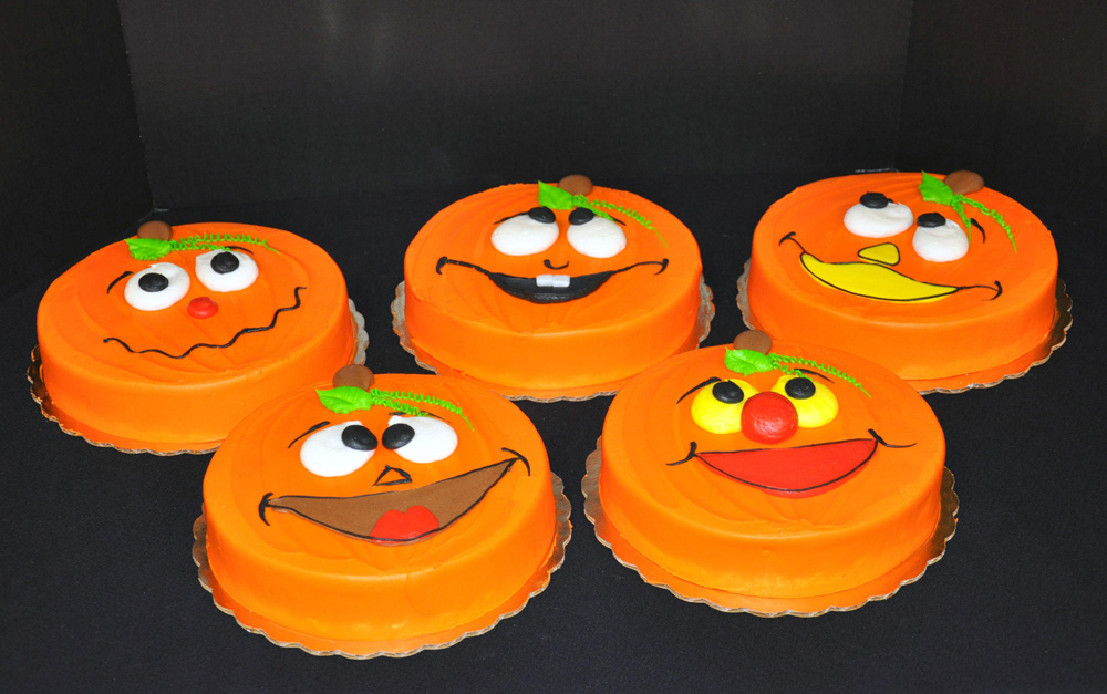Chocolate cakes with cute Halloween Jack-O-Lantern faces!