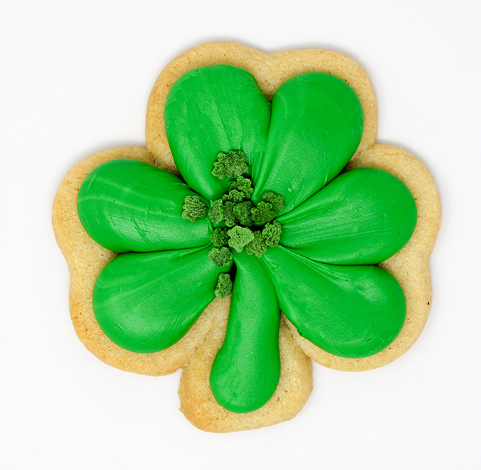 Our classic decorated cookie in the shape of a St. Patrick's Day shamrock.