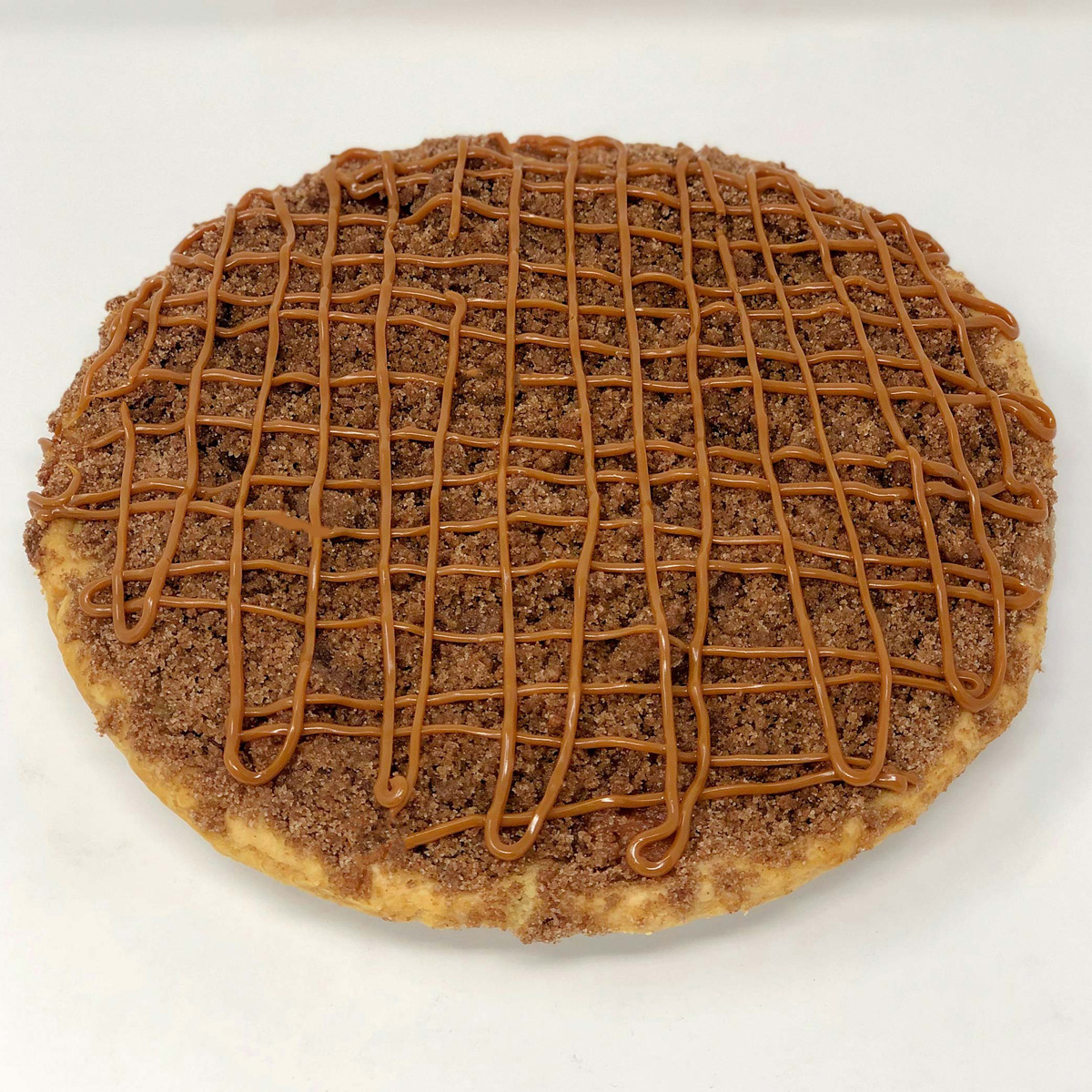 A great twist on the American favorite apple pie! This one has a cinnamon crunch topping and drizzled with caramel. This pie is amazing when served warm and a dollop of ice cream!