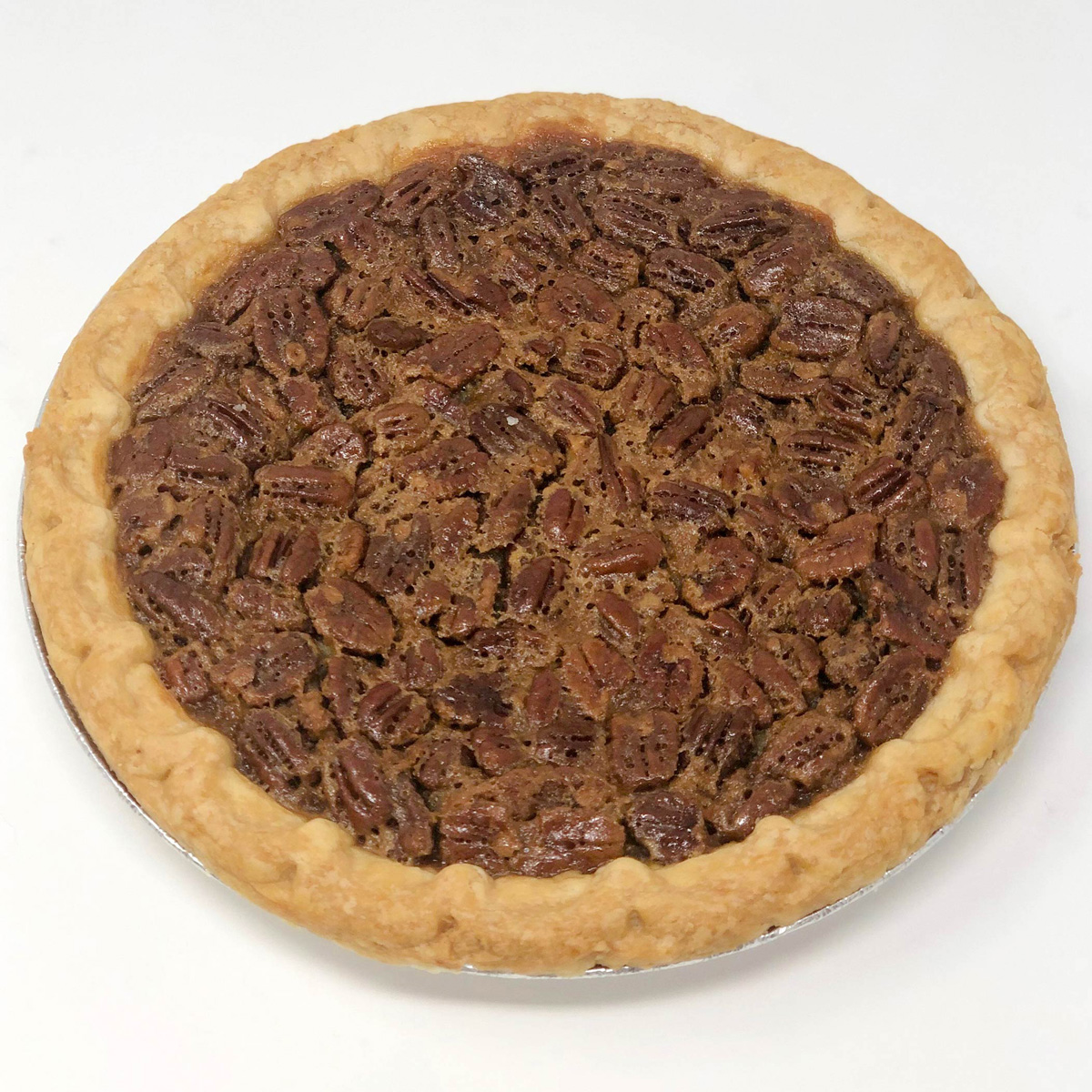 Traditional pecan pie filling topped with pecan halves and then baked to perfection. What could be better than hot pecans on a pie straight out of the oven?